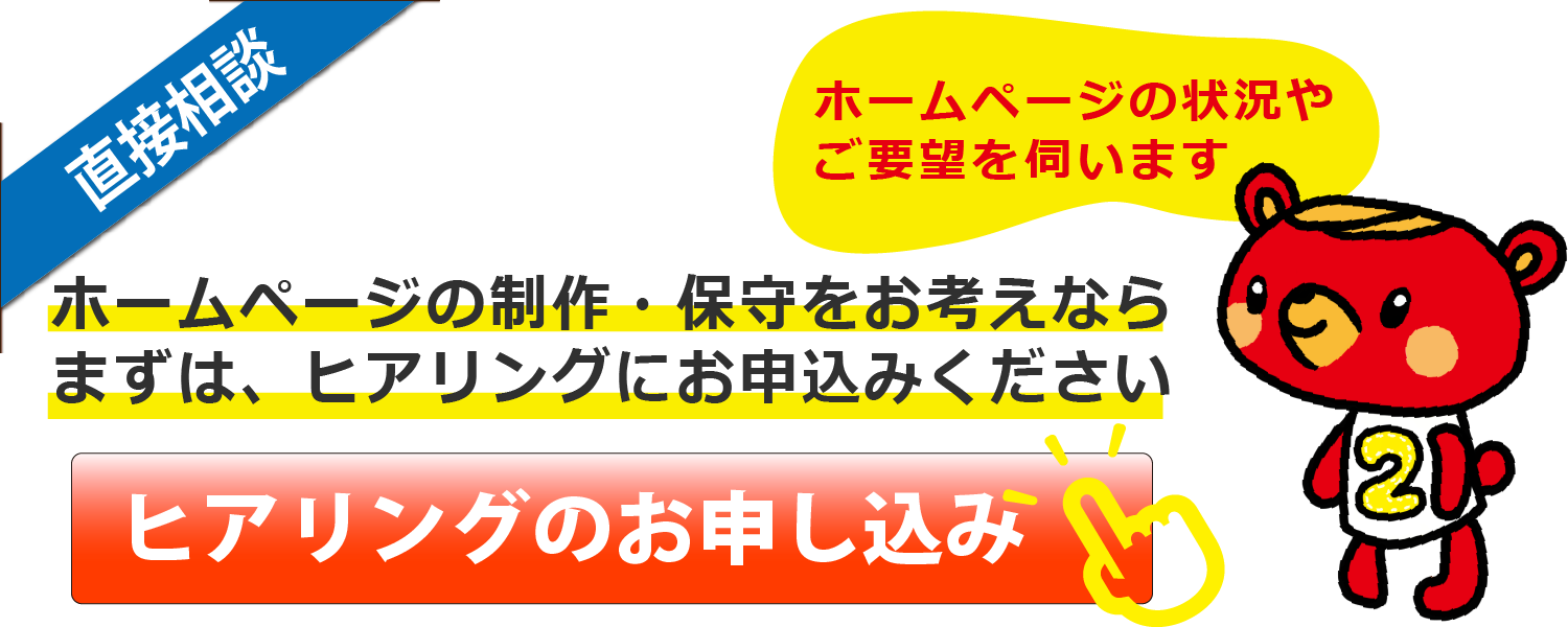 まずは、[ ヒアリング ]をお申込みください。ホームページの雰囲気や見積書を提示いたします。